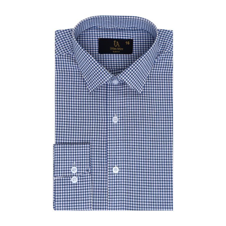 Dark Blue Gingham Check Formal Shirt